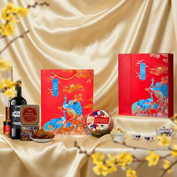 Hộp Quà Tết KHỔNG TƯỚC MINH SONA – Sắc Xuân Rực Rỡ, Phú Quý Khai Hoa