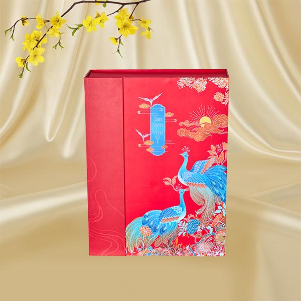 Hộp Quà Tết KHỔNG TƯỚC MINH SONA – Món quà phú quý rực rỡ, mang lời chúc vạn điều như ý đầu xuân.