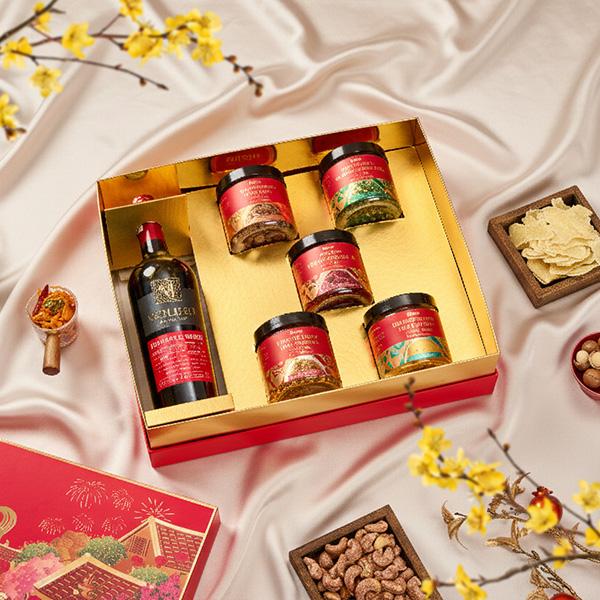 Bên trong hộp là những sản phẩm quen thuộc – chuẩn vị Tết Việt: