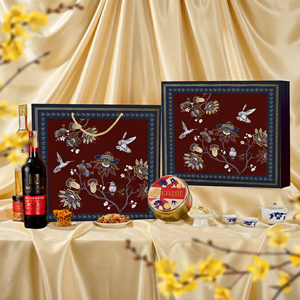 Hộp Quà Tết XUÂN HOA CA SONA lấy cảm hứng từ bản hòa ca của chim xuân và hoa nở, mang lại cảm giác thư thái và thanh nhã. Tông đỏ trầm pha lam cổ điển, điểm họa tiết hoa cách điệu và chim én sải cánh, tạo nên vẻ sang trọng, sâu lắng và tinh tế. Đây là lựa chọn hoàn hảo cho doanh nghiệp hướng đến sự tinh giản nhưng đẳng cấp – một món quà vừa thể hiện thẩm mỹ, vừa chứa đựng lời chúc bình an.