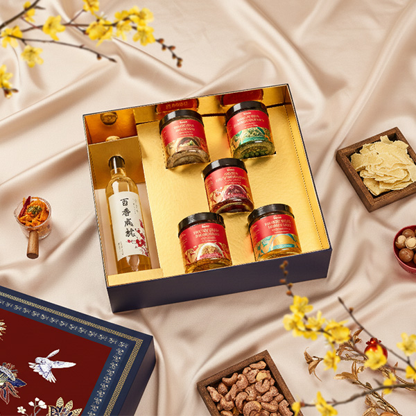 Bên trong hộp là bộ quà Tết chọn lọc kỹ lưỡng: