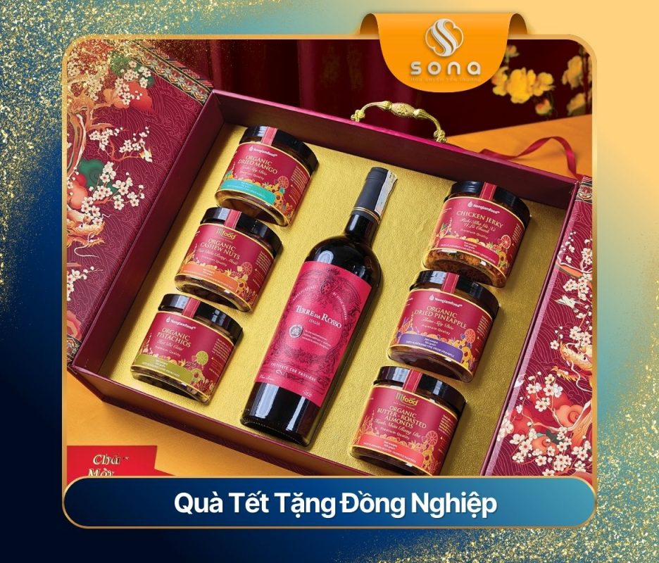 Sona Gift là thương hiệu chuyên về quà Tết doanh nghiệp và cá nhân, đặc biệt được ưa chuộng trong các dịp lễ Tết. Tại đây, bạn có thể dễ dàng tìm thấy các mẫu hộp quà truyền thống, giỏ quà Tết đặc sản, quà sức khỏe, hoặc các set quà kết hợp trà, bánh kẹo, rượu vang, đồ trang trí – tất cả đều được đóng gói chỉn chu, phù hợp với môi trường làm việc hiện đại.